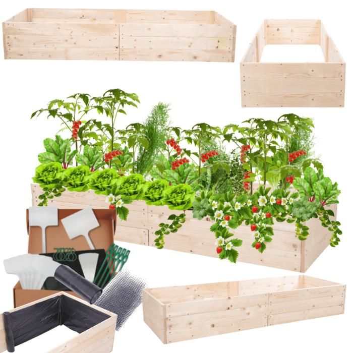 MODO24 ZP06 Jardinière surélevée bac potager bois de pin massif pour jardin et terrasse extérieur 27x163x60 cm naturel