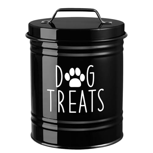 Fenteer Conteneur de Stockage Boîte à Croquettes Pot à Biscuits Bac pour Chien Récipient Alimentaire en Métal avec Couvercle Étanche Approprié pour Une, Noir