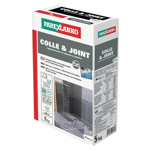 Parexlanko - Colle & Joint - Spécial Douche à l 'Italienne et Piscine - 2 en 1- Collage & Finition - Blanc - Joints de 1 à 15 mm - 5 kg