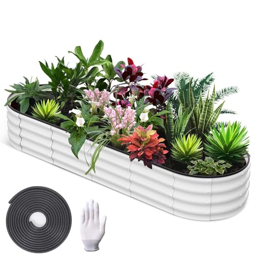 Grand Potager Surélevé de Jardin en Acier galvanisé,Carré potager en Fond Ouvert,Durable & Antirouille,Bac surélevé/Lit de Jardin Ovale pour Culture légumes,herbes,fleurs(180X90X30cm,Blanc)
