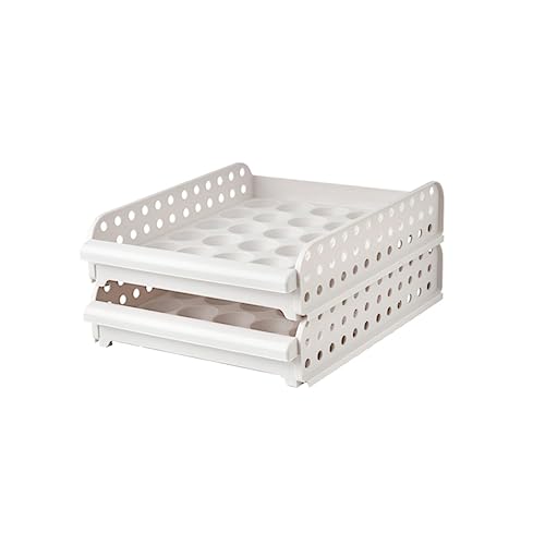 GLEAVI Boîte à Œufs Empilable En Plastique Blanc 2 Niveaux, Rangement 30 Œufs Par Étage, Organiseur De Bac à Légumes Pour Réfrigérateur, Compatible Congélateur Et Placard, Système Anti-chocs