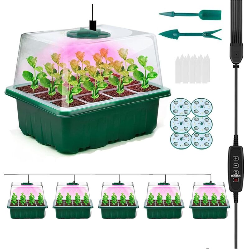 Mini Serre pour Plantes, Bac à Semis, 5 Mini Serres de Culture Intérieur avec Lumière, Plateau de Semis pour Plantes Intérieur avec Contrôleu, Mini