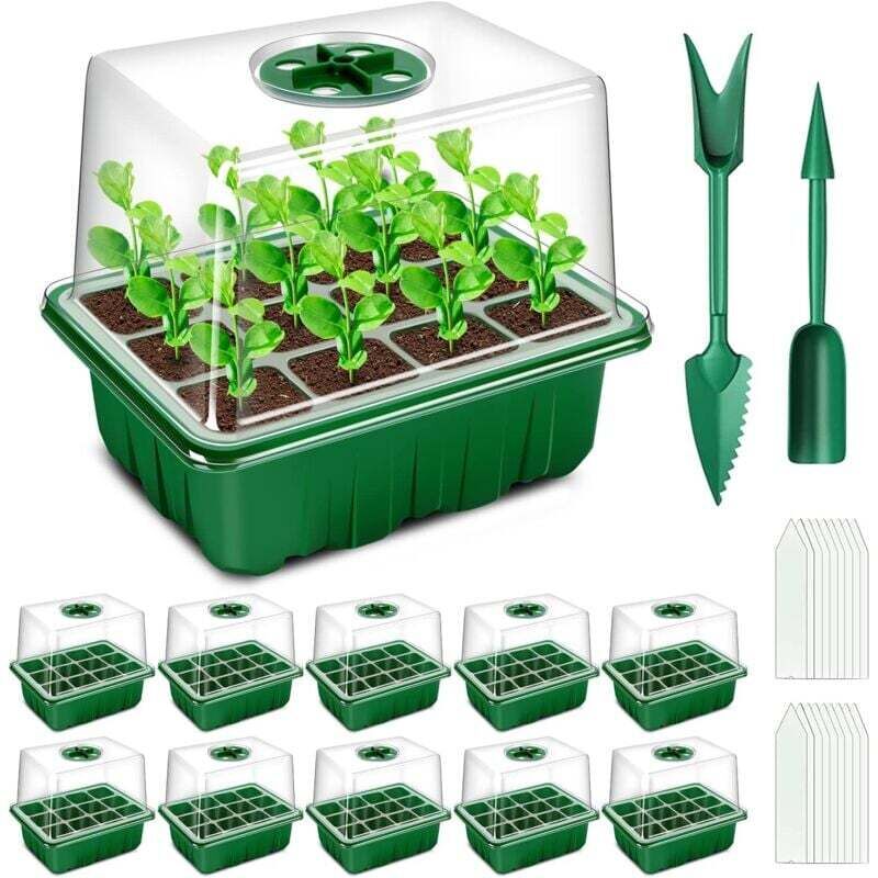 Mini Serre pour Plantes, 10 Pièces 120 Cellules Intérieure Plateau Semis avec couvercles rehaussés, Bac à semis Pépinière Boîte de Culture Durables,