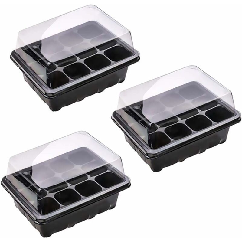 Bac à semis Démarrage de Semis Plateau, 3pcs Boîte de Germination Mini Serre pour Semis avec Dôme D'humidité Réglable pour la Culture des Plantes(12