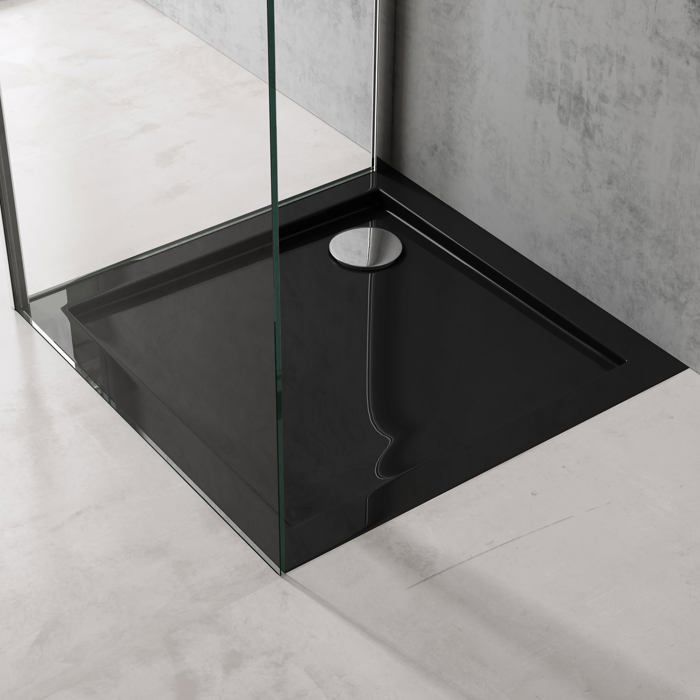 doporro Receveur de Douche 70x70 Bac à Douche Carré Extraplat Acrilique Noir Faro01 70x70x4 cm avec Bonde AL02