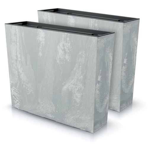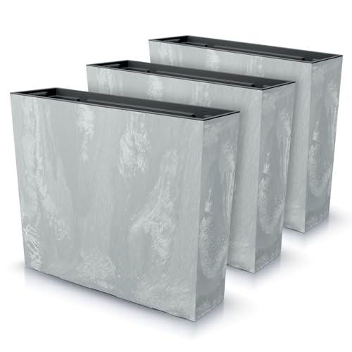 IMJ-Global - Pot de Fleur Interieur Exterieur Beton Effect (58x18x 9,8 cm - 44 litres) Bac Plastique Rectangulaire pour Plante. Pots de Fleurs pour Décorer la Maison ou être Exposé à l'Extérieur