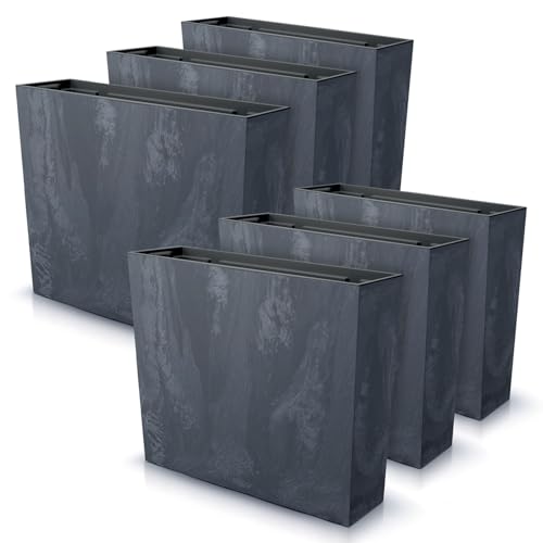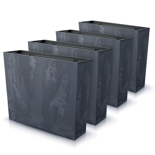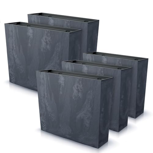 LAMELA Bac À Plantes avec Soucoupe Intégrée, Largeur 22,5 cm – 7L – Pot De Fleur Noir Aspect Béton pour Intérieur & Extérieur – Résistant Aux Intempéries & Facile À Entretenir