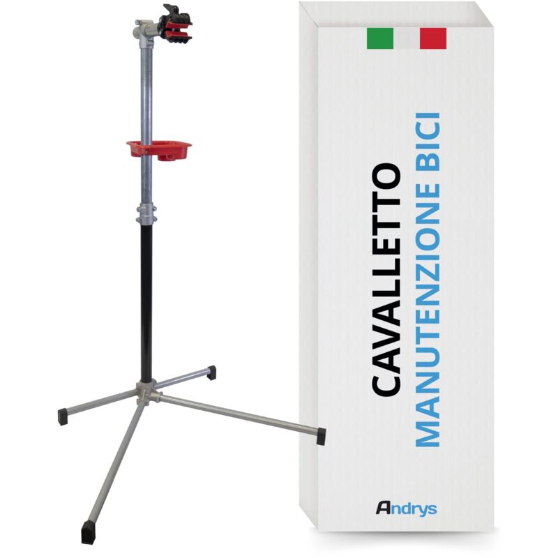 Andrys Srl - Andrys - Support de Vélos sur Pied pour l'Entretien, Hauteur Réglable, Étau Pivotant, Visserie et Bac, Max 18 kg, 73x70x143 cm