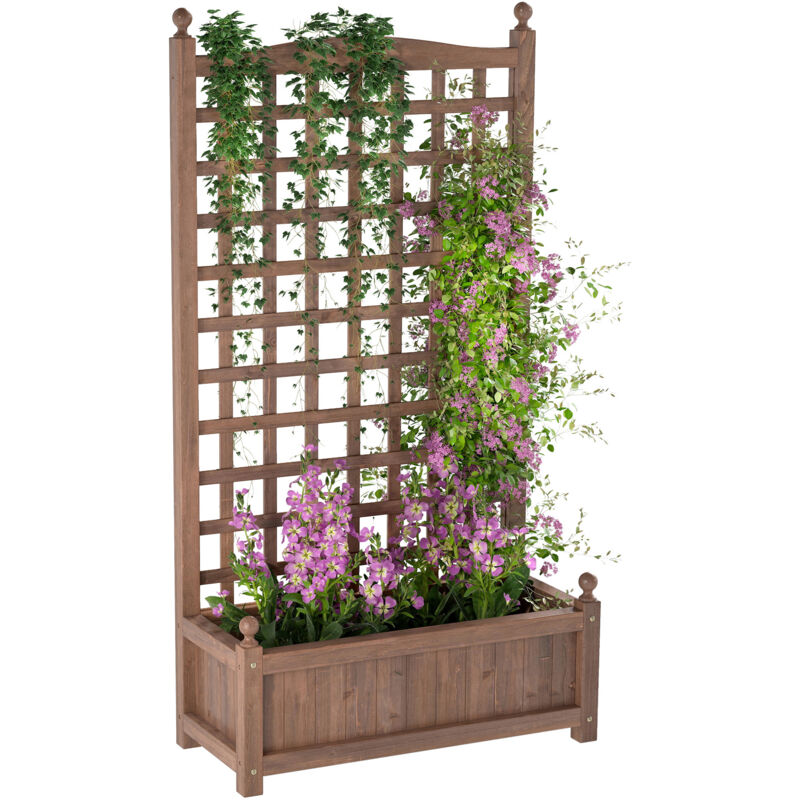 Outsunny Jardinière avec Treillis - bac à Fleurs - jardinière sur Pied - dim. 64L x 28l x 120H cm Inserts d'irrigation Inclus Bois Sapin traité