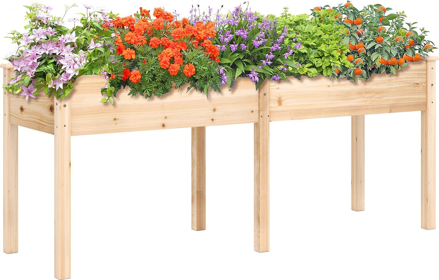 COSTWAY Lit surélevé en bois, Lit de jardin surélevé, bac à plantes avec paroi de séparation & trous de drainage, Lit de légumes, lit de plantes, lit d'herbes aromatiques 184x58x77 cm Naturel