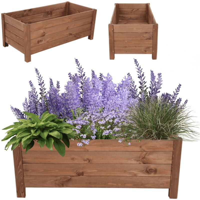 MODO24 Jardinière sur pieds en bois de pin, bac à fleurs jardin/balcon/terrasse, pour fleurs & herbes, 31x80x40 cm, marron imprégné