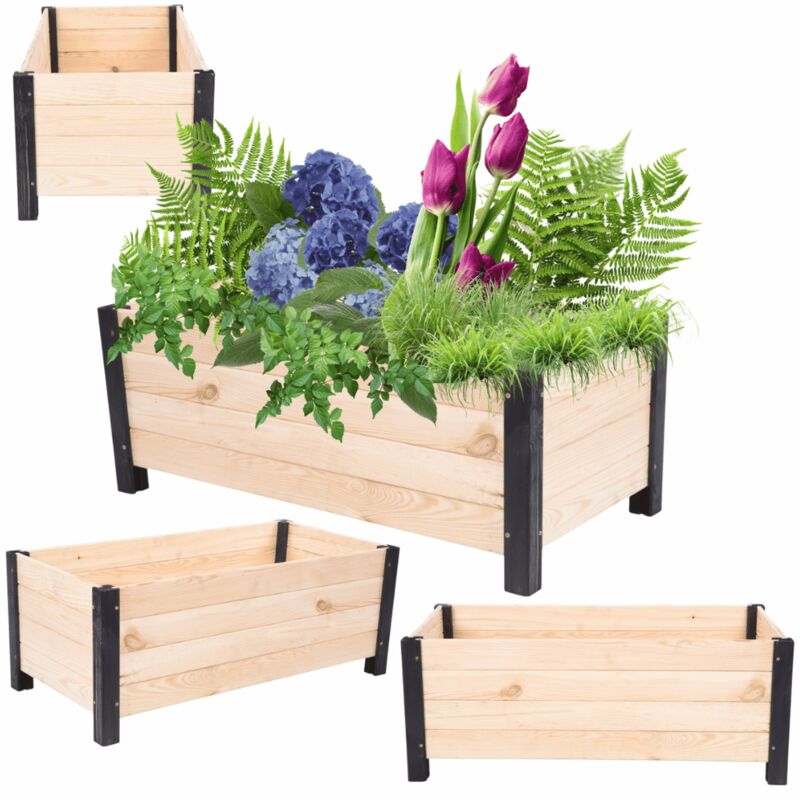 MODO24 Jardinière sur pieds bois pin, bac à fleurs jardin/balcon/terrasse, pour fleurs & herbes, 31x80x40 cm, naturel-noir imprégné