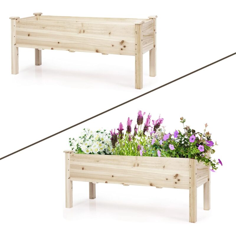 Goplus - Jardiniere sur Pieds en Bois, Bac a Fleurs Rectangulaire avec 5 Trous de Drainage pour Legumes, Herbes, Fleurs,Convient a