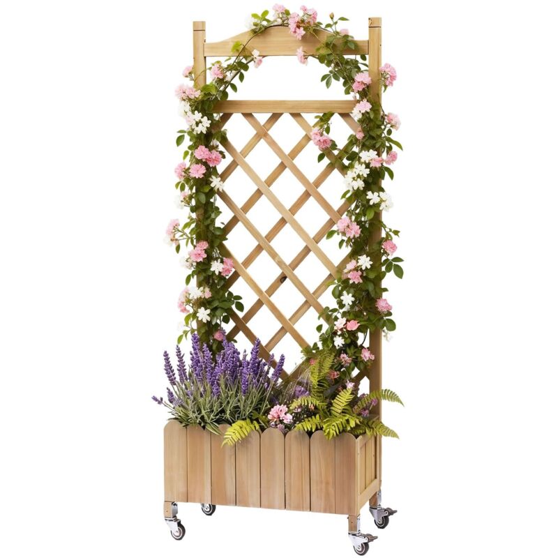 Jardinière avec Treillis - RELAX4LIFE - Bois de Sapin - Jardiniere Surélevée sur Roulette - Bac à Fleurs avec Treillis- 64X28X125CM