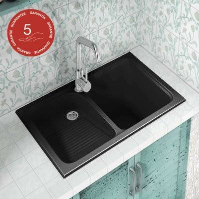 Poalgi Evier Bac à laver pour buanderie encastrer Cuarzo Noir - 2 bacs