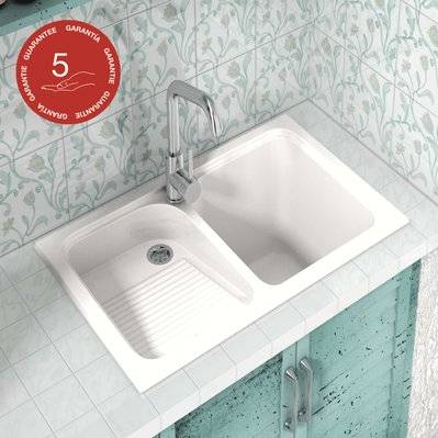 Poalgi Evier Bac à laver pour buanderie encastrer Silex Blanc - 1 bac + égouttoir