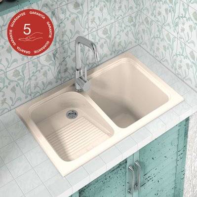 Poalgi Evier Bac à laver pour buanderie encastrer Cuarzo Pergamon - 2 bacs