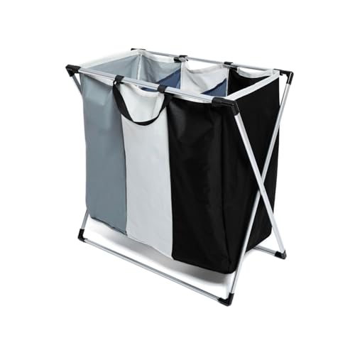 Syengery Panier À Linge, Corbeille à Linge Repliable 3 Compartiments, Bac Textile Avec Poignées Renforcées Léger Pour Maison Chambre Chambre Bébé Dortoir Université