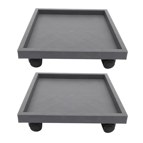 jojofuny Lot de 2 Supports Carrés pour Plantes avec Plateau Imitation Ciment 290 Mm à roulettes, Bac à Fleurs Mobile Extérieur Intérieur, Chariot de Jardinage Robuste et Stable