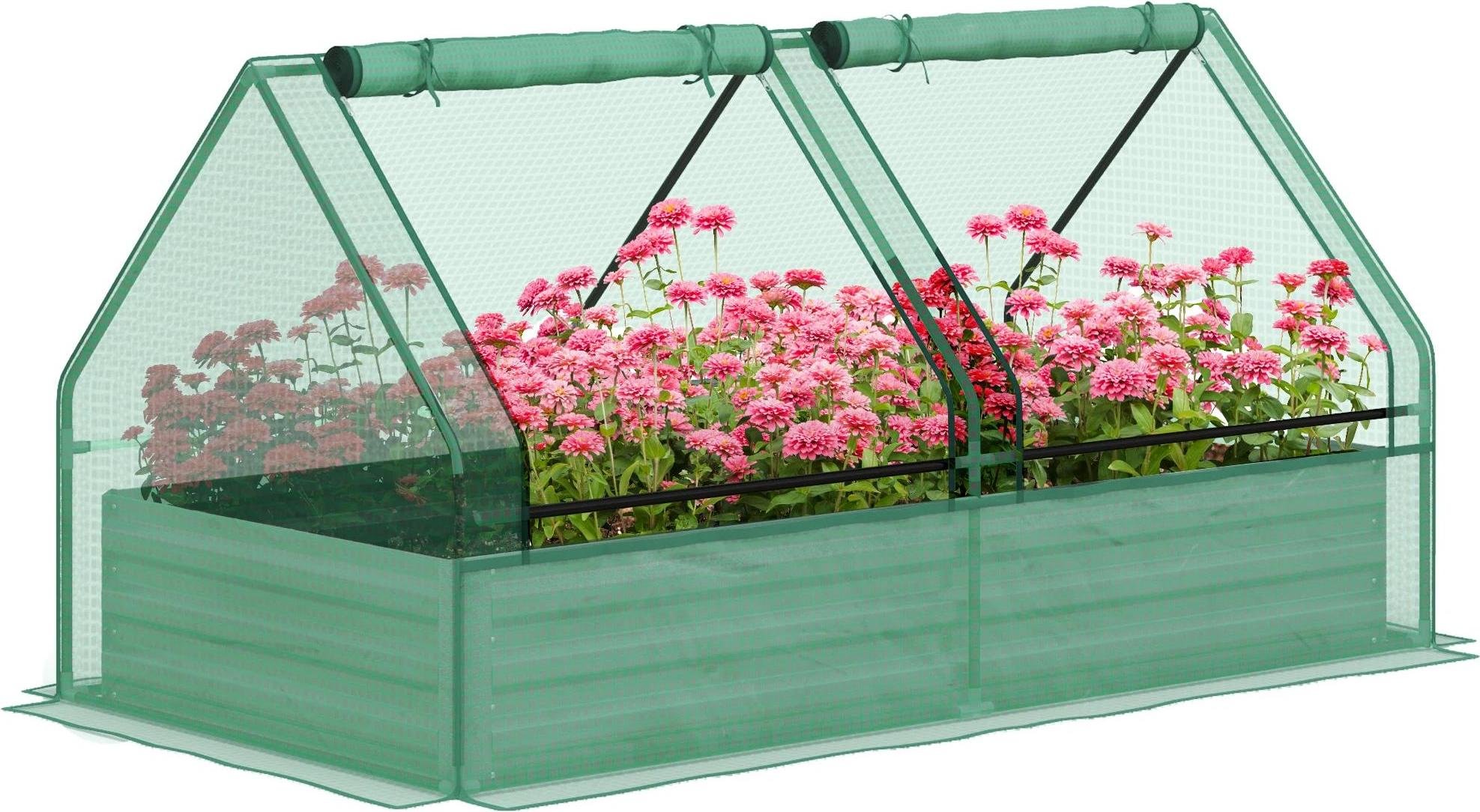 Bac à plantes d'extérieur - Mini-serre à fond ouvert - Métal galvanisé - 185x95x92 cm - Vert