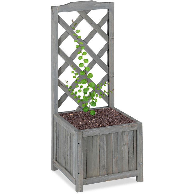 Relaxdays Jardinière avec Treillis Espalier Tuteur Plantes grimpantes bac à Fleurs Bois Vigne Lierre 20L, 90cm, Gris