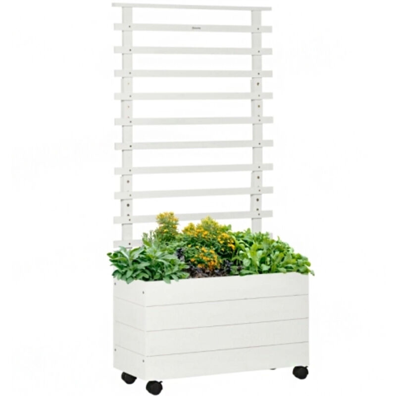 Etagère de jardin-jardinière avec treillis-bac roulant-carré potager pour plantes grimpantes-bois naturel blanc-76x30x155cm