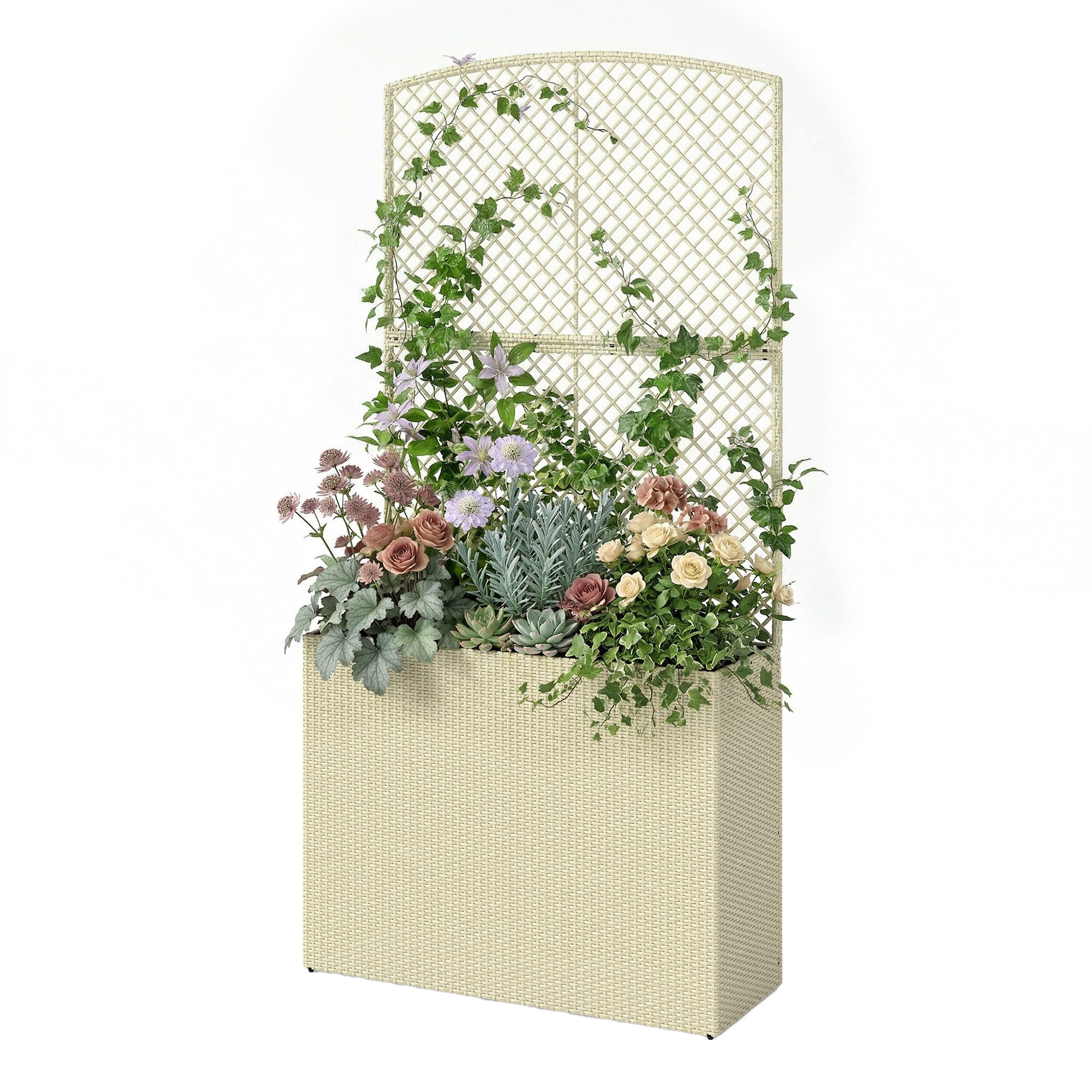 Outsunny Jardinière avec treillis en rotin Jardinière extérieure grande avec bac pour plantes grimpantes 80x30x163 cm beige