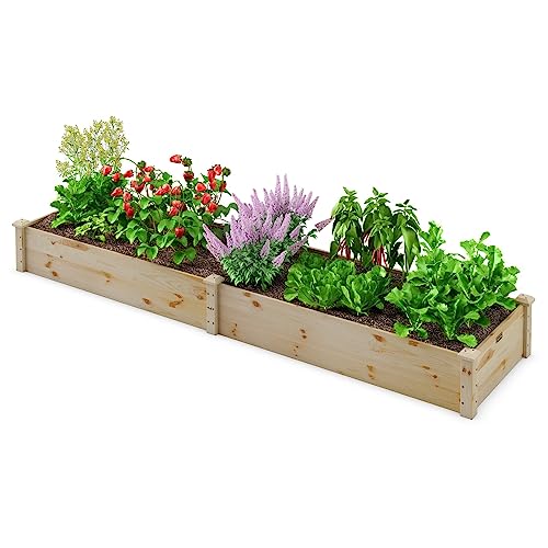 RELAX4LIFE Carré Potager en Bois de Sapin sans Fond, Jardinière Rectrangulaire Imperméable pour Légumes Fleurs Fruits, Bac à Plantes pour Cour Jardin Pelouse, 240X60X25 CM