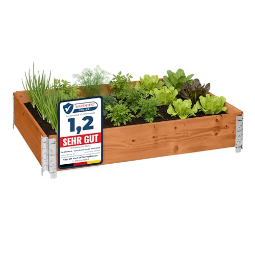 Garronda Potager surélevé en Bois Naturel 120x80x20 cm pour Jardin – Jardinière rectangulaire 3 piècespour Plantes, Fleurs, légumes et Herbes - Bac Potager en Bois GD-0075, Marron