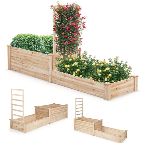 GOPLUS Jardinière Surélevée avec Treillis, Bac à Fleurs Extérieur en Bois avec Compartiments Divisés pour Fleurs, Légumes, Vignes Grimpantes, Assemblage DIY, Potager Surélevé pour Jardin, Patio