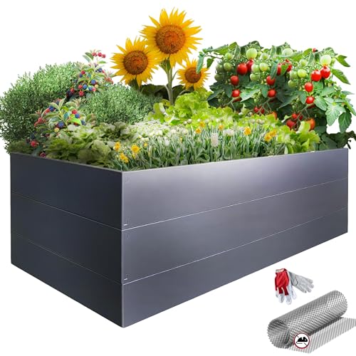 GARTENDEK® Bac Potager Surélevé Métal 200×100×63 cm – Anthracite – Résistant à la Corrosion – Montage Facile – Jardin Urbain pour Légumes, Fines Herbes, Fleurs – Filet Anti-Taupes Inclus