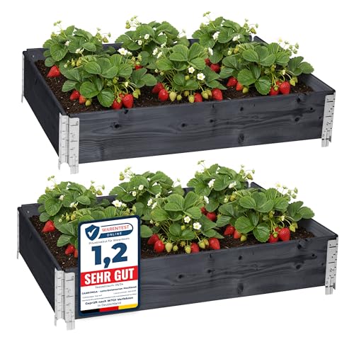Garronda Potager surélevé en Bois Naturel 120x80x20 cm pour Jardin – Jardinière rectangulaire 2 piècespour Plantes, Fleurs, légumes et Herbes - Bac Potager en Bois GD-0075, Anthracite