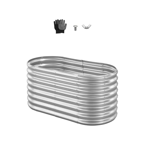 VEVOR Potager Surélevé Métal 120x60x60 cm Carré Potager Surélevé Galvanisé Lit de Jardin Ovale Bac de Jardinage Fond Ouvert pour Culture de Légumes Fleurs Herbes Aromatiques Plantes Grasses, Argenté