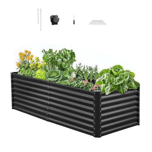 VEVOR Potager Surélevé Métal 180x90x60 cm Carré Potager Surélevé Galvanisé Lit de Jardin Fond Ouvert Bac de Jardinage pour Culture de Légumes Fleurs Herbes Aromatiques Plantes Grasses, Gris Foncé