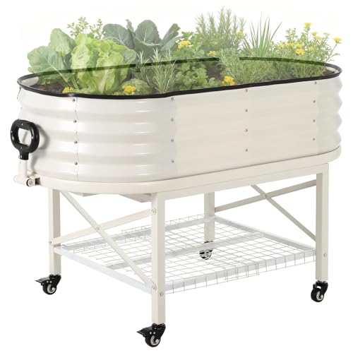 GarveeHome Grand Jardinière surélevée en Acier galvanisé sur roulettes,Carré Potager Mobile avec Filet Anti-Oiseaux,Bac surélevé sur Pied,Bac à Plantes pour légumes,Herbes,Fleurs(120X60X30cm,Blanc)