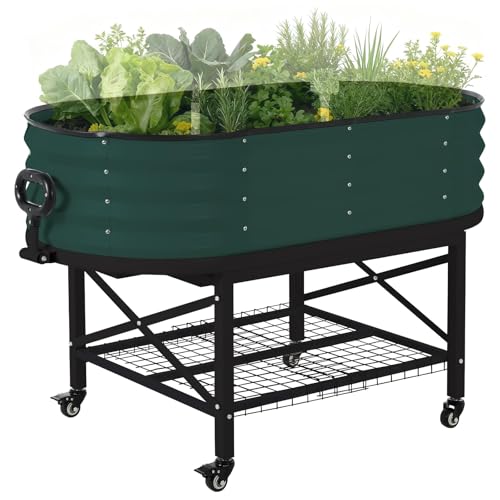 GarveeHome Grand Jardinière surélevée en Acier galvanisé sur roulettes,Carré Potager Mobile avec Filet Anti-Oiseaux,Bac surélevé sur Pied,Bac à Plantes pour légumes,Herbes,Fleurs(120X60X30cm,Vert)