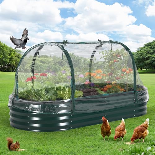 Grand Carré potager en Acier galvanisé, Bac surélevé en Fond Ouvert, Jardinière surélevée avec housse PVC amovible – Résistant intempéries,Bac à Plantes Pour légumes,herbes,fleurs(180X90X30cm,Vert)