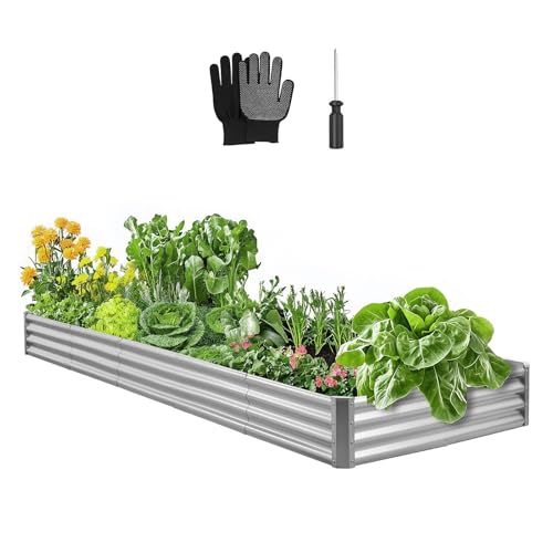VEVOR Potager Surélevé Métal 360x120x29 cm Carré Potager Surélevé en Galvalume Lit de Jardin Fond Ouvert Bac de Jardinage pour Culture de Légumes, Fleurs, Herbes Aromatiques, Plantes Grasses, Gris
