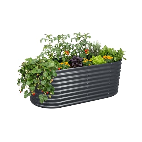 VEVOR Potager Surélevé Métal 240x60x60 cm Carré Potager Surélevé Galvanisé Lit de Jardin Ovale Bac de Jardinage Fond Ouvert pour Culture Légumes Fleurs Herbes Aromatiques Plantes Grasses, Gris Foncé