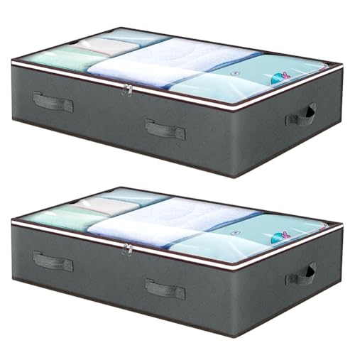JynxtoyZeal Bacs de Rangement sous le Lit, 2pcs Sac Rangement Vetement sous Lit avec Poignée Renforcée,Bac de Rangement pour Vêtements, Draps, Couettes