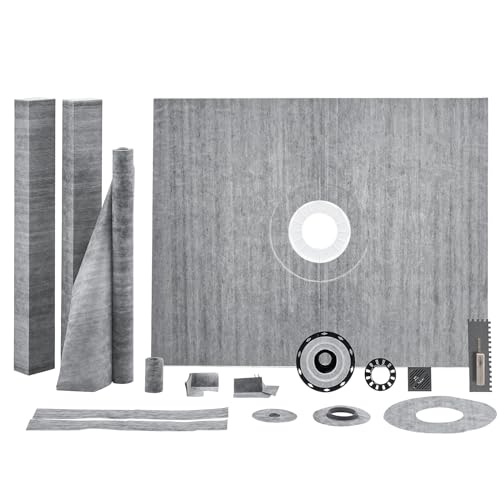 VEVOR Ensemble de Bordure de Douche, 1828 x 1828 mm, Receveur de Douche Bride Centrale en PVC, Grille en Acier Inoxydable de 101,6 mm, Membrane et Bande imperméables, bâtons de Pente de bac à Douche