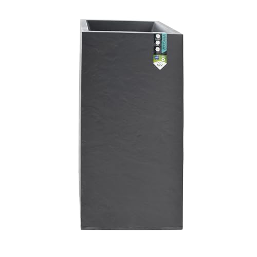 EDA - Bac à Fleurs Carré Haut Volcania 31 L - Décor Imitation Pierre - Utilisable à l'Intérieur & l'Extérieur - Zone de Rétention d'eau pour Limiter l'Arrosage - 39,5 x 39,5 x 80 cm - Beige Calcaire