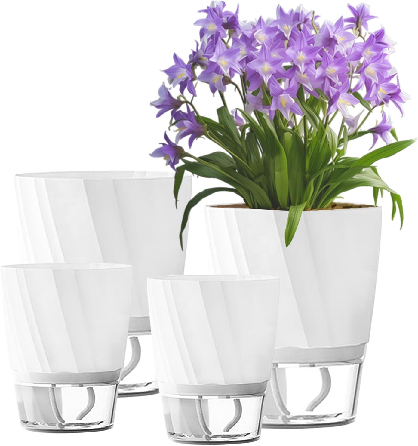 4 Pcs Pots de Fleurs en Plastique,20/15/12cm Pot de Fleurs Auto-arrosant,bac a Reserve d'eau pour Plante Interieur pour Planter Les Plantes Fleur Facilement,décoration pour Jardin Maison