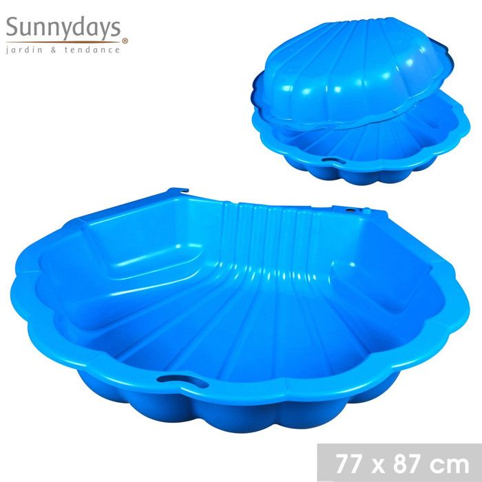 Bac à sable bleu avec couvercle coquille