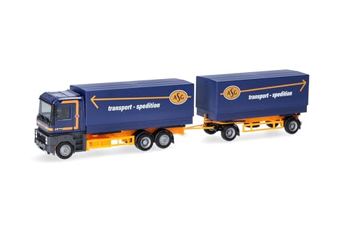 Herpa modèle réduit Camion Renault AE Ensemble Routier à caisses Mobiles/bâché « ASG » (Suède), Miniature à l’échelle 1:87, pièce de Collection, Made in Germany, Plastique
