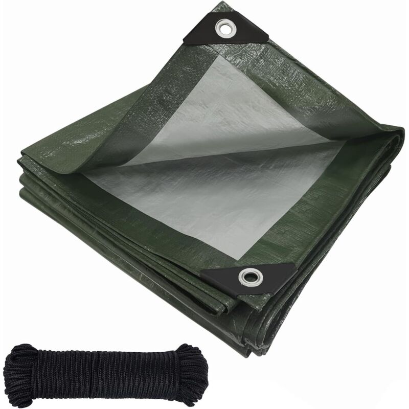 Bâche imperméable avec œillets, 120g/m² bâche tissée en PE, bâche de camion protection résistante aux intempéries, poussière, UV-résistante à la déchirure, couverture pour meubles de jardin bois