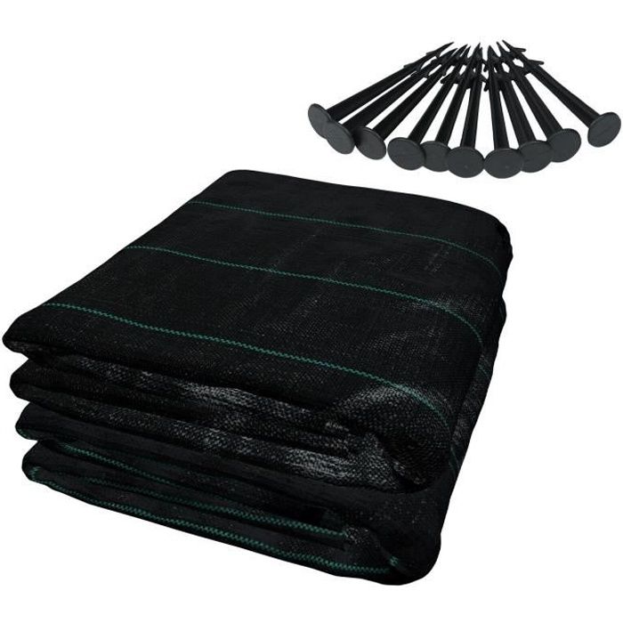 SKYLANTERN Toile de Paillage 150g/m² très épais avec 100 Agrafe Toile paillage - Anti Repousse Gravier 50Mx1M (50m2) pour Terrasses et Allées - Bache Noire Agricole 150g + 100 Sardines de Fixation