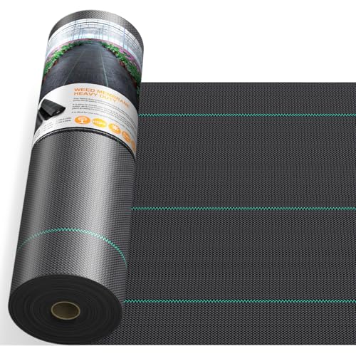 Froadp Toiles de Paillage 100g/㎡ PP Lutte Contre Les Mauvaises Herbes Stabilité aux Anti-UV Bâche Drainant Tapis Anti Repousse Feuille de Plantation Pliable pour Le Jardin & Potager (50㎡, 1x50m)