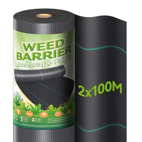 iropro Toile de Paillage 2m x 100m Geotextile,de Paillage Bache Geotextile Toile Anti Mauvaises Herbes Tissu Perméable à l'eau, 90GMS Résiste Rayons UV,Anti Repousse- 200㎡ de Geotextile Noir