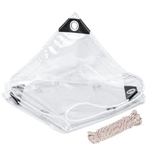 Bâche de Protection avec Oeillets 3.2 x 8 m avec Œillets - Imperméable - Transparent Résistant Aux UV Imperméable Film de Construction pour Jardin, Camping, Bois, Transparent